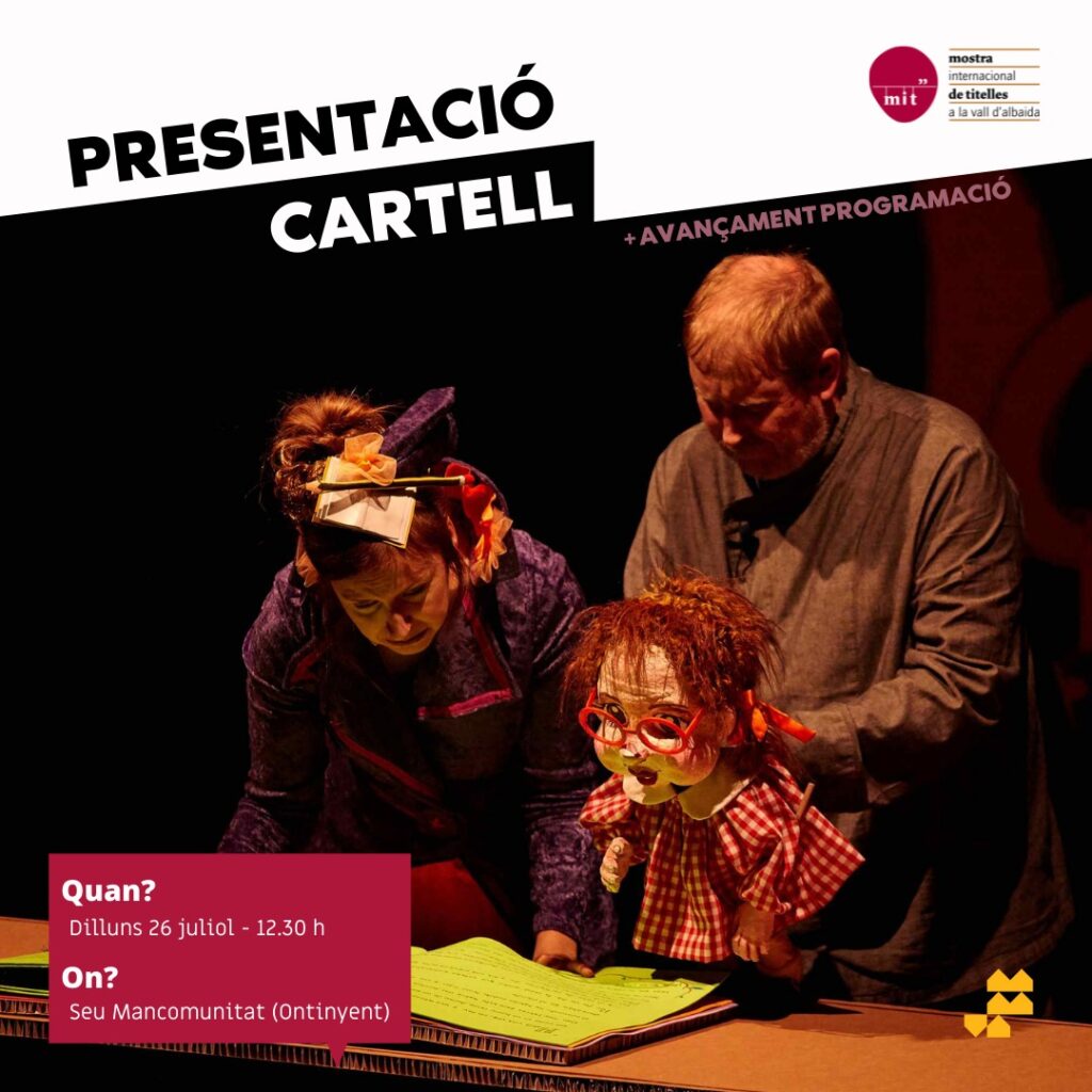 Quina emoció!! El pròxim dilluns vos presentarem el cartell de la 36a Mostra Internacional de Titelles a la Vall d’Albaida i farem un xicotet avançament de la programació. Ens acompanyaran Vicent Gomar, President de la Mancomunitat; Fede Vidal, Conseller de Cultura; Marisol Limiñana, Directora Artística de la Mostra i Álvaro Sanchis, el nostre benvolgut dissenyador. […]